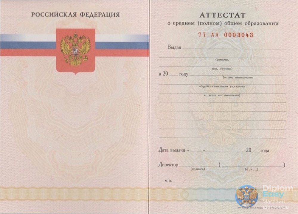 Аттестат об окончании 11 классов с 2008 по 2009 годы