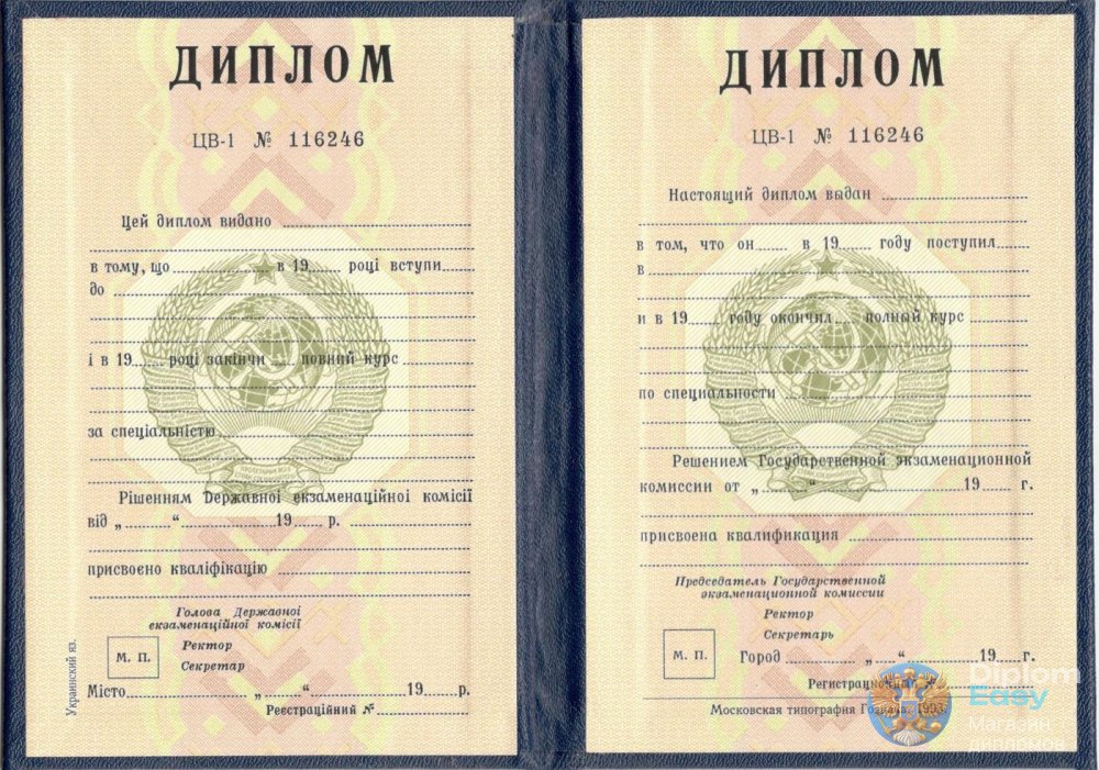 Диплом УССР с 1980 по 1991 годы